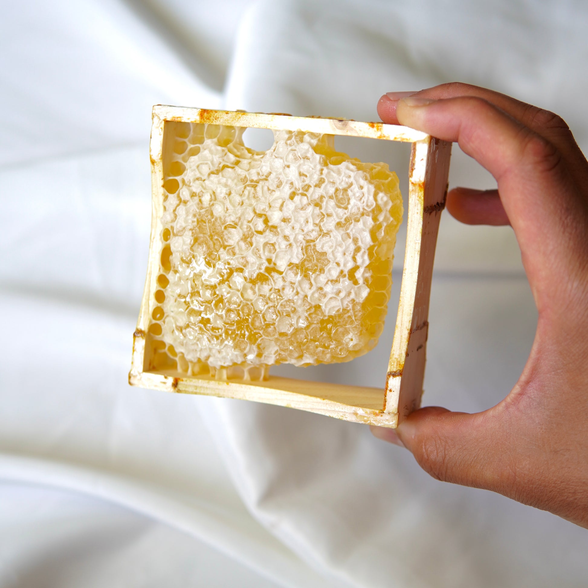 Reine, naturbelassene Honigwabe in Rohkostqualität.